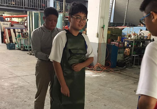 隊員體驗割草護具穿戴情形