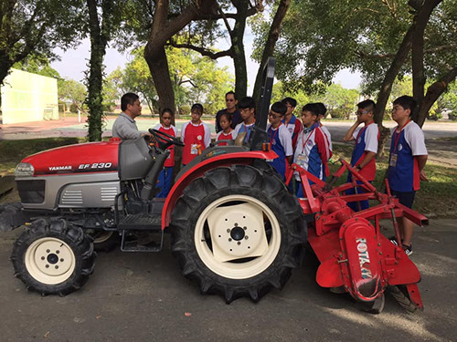 再來介紹曳引機,這是一台多用途的機具,可以耕田、翻土、施肥、播種等工作非常神奇,我們小隊都非常喜歡它。它像一部汽車,但功能比汽車多很多。