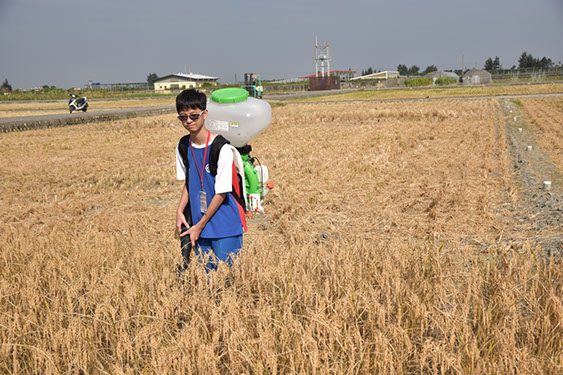 隊員模擬田間施肥作業