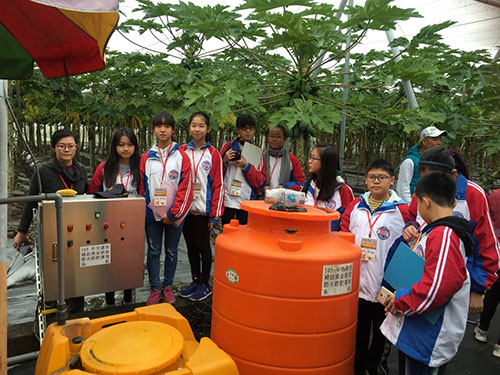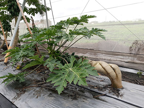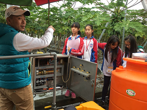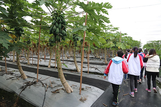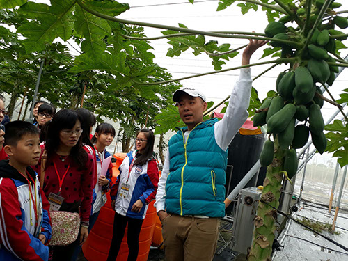 這次行程是安排去溪洲鄉黃金廊道範圍內的木瓜農場,農場主人是張家朋先生。張先生從事木瓜種植有3-4年的時間,這個農場是新設立的,佔地面積有一公頃。全區採用網室栽培,也就是能防昆蟲及鳥類入侵,但是不能隔絕雨水。