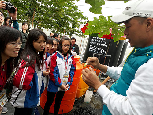 張加朋先生介紹木瓜雄雌花瓣分辨