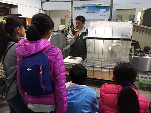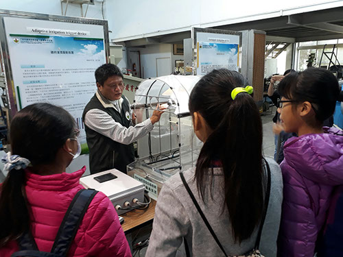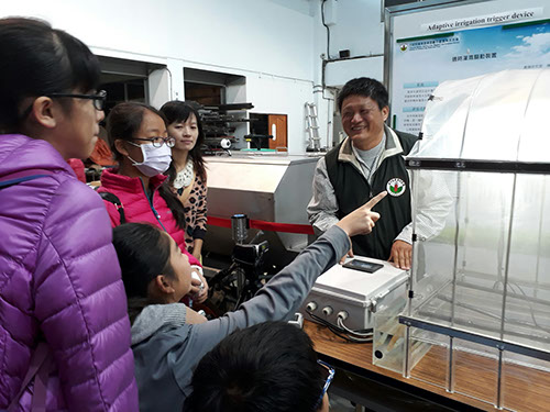 在智慧節水系統方面,我們明倫特攻隊到了臺中區農業改良場來參觀學習。在之前我們學習到了滴灌系統的運作及滴灌元件省水的原理。比起傳統灌溉方式已經能省很多水,但我們這次來學習更智慧的節水系統。