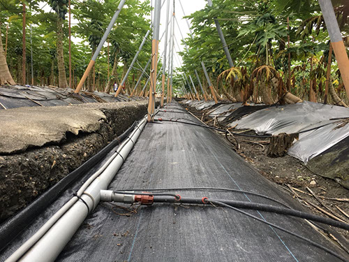 Drip irrigation pipeline of Papaya garden