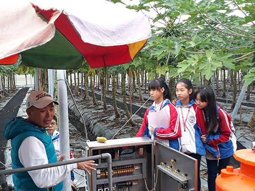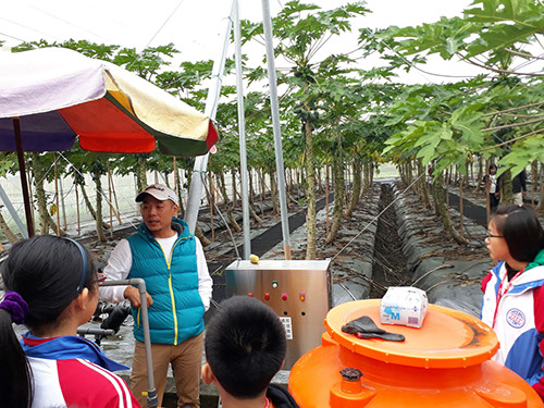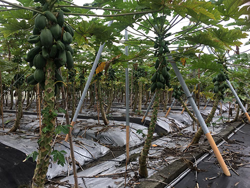This itinerary is to arrange to go to Xixi Township Golden Corridor within the range of Papaya Farm, the farmer is Mr. Jhang He has been engaged in papaya cultivation for 3-4 years, the farm is newly established and covers an area of one hectare. The whole area uses the net room cultivation, namely can prevent the insect and the bird invasion, but cannot isolate the rainwater.